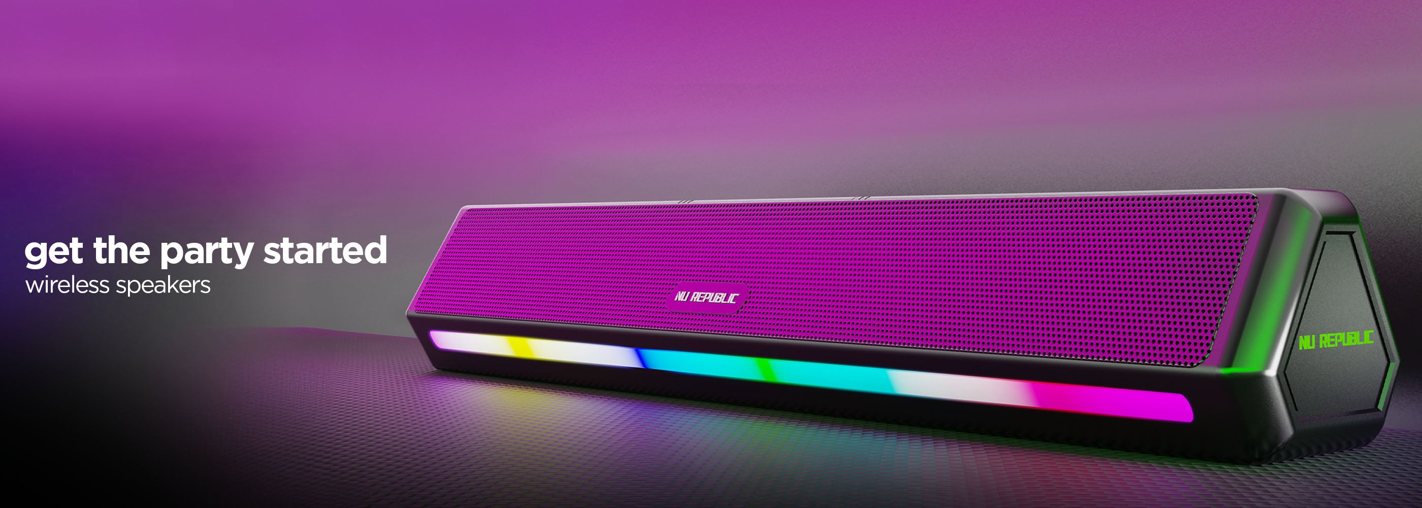 Nu Republic® cranks up the volume with the Partybox 240 wireless soundbar - where vibrant LED lights combine with unmatched sound, blending style and performance like never before!