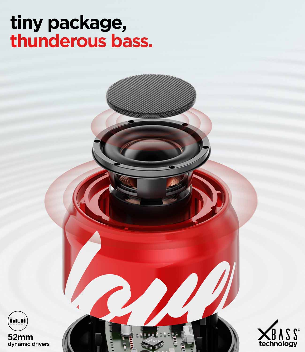 TWS Pairing | 6W Output | Wireless Connectivity | X-Bass® Technology | 15 Hrs* Playtime | 52mm dynamic drivers