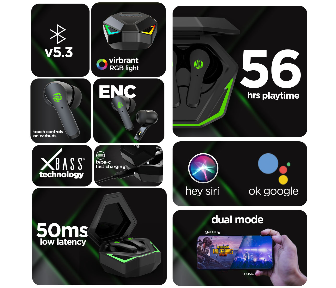 56 Hrs Playtime | RGB Lights With Futuristic Design | Dual Mode (Gaming/Music) | 50ms ultra-low latency | Environmental Noise Cancellation (ENC)