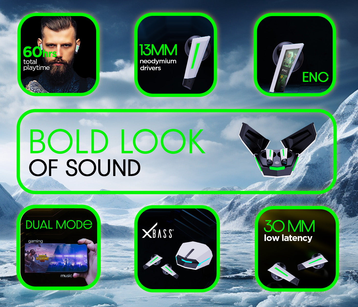 Powered by our proprietary X-Bass® technology, and featuring a staggering 60 hours of playtime along with 50ms ultra low latency for fast response rates and mesmerizing LED lights, Transform-X Arctic Menace is a guaranteed head turner made for gamers who never settle for less.