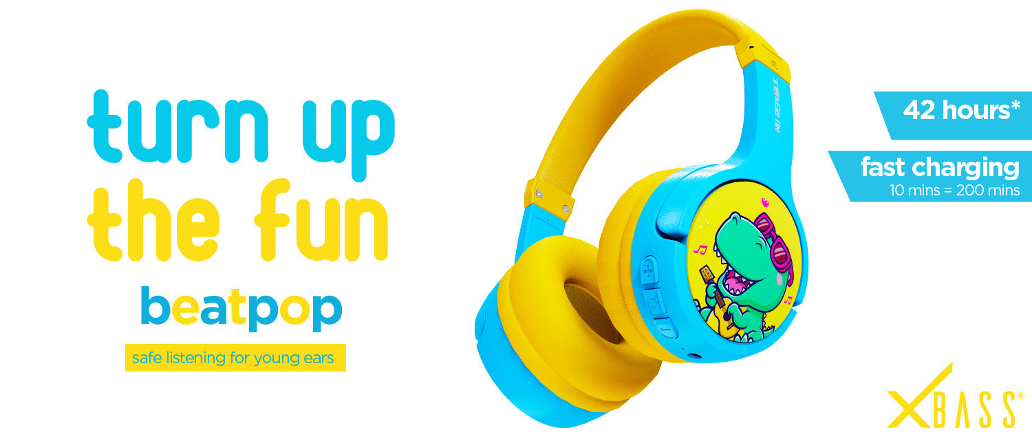 Sound just found its swagger. Say hello to Beatpop kids wireless headphones — Nu Republic®’s bold new launch crafted especially for kids, bringing safe sound, big style, and non-stop play to the next generation of listeners.