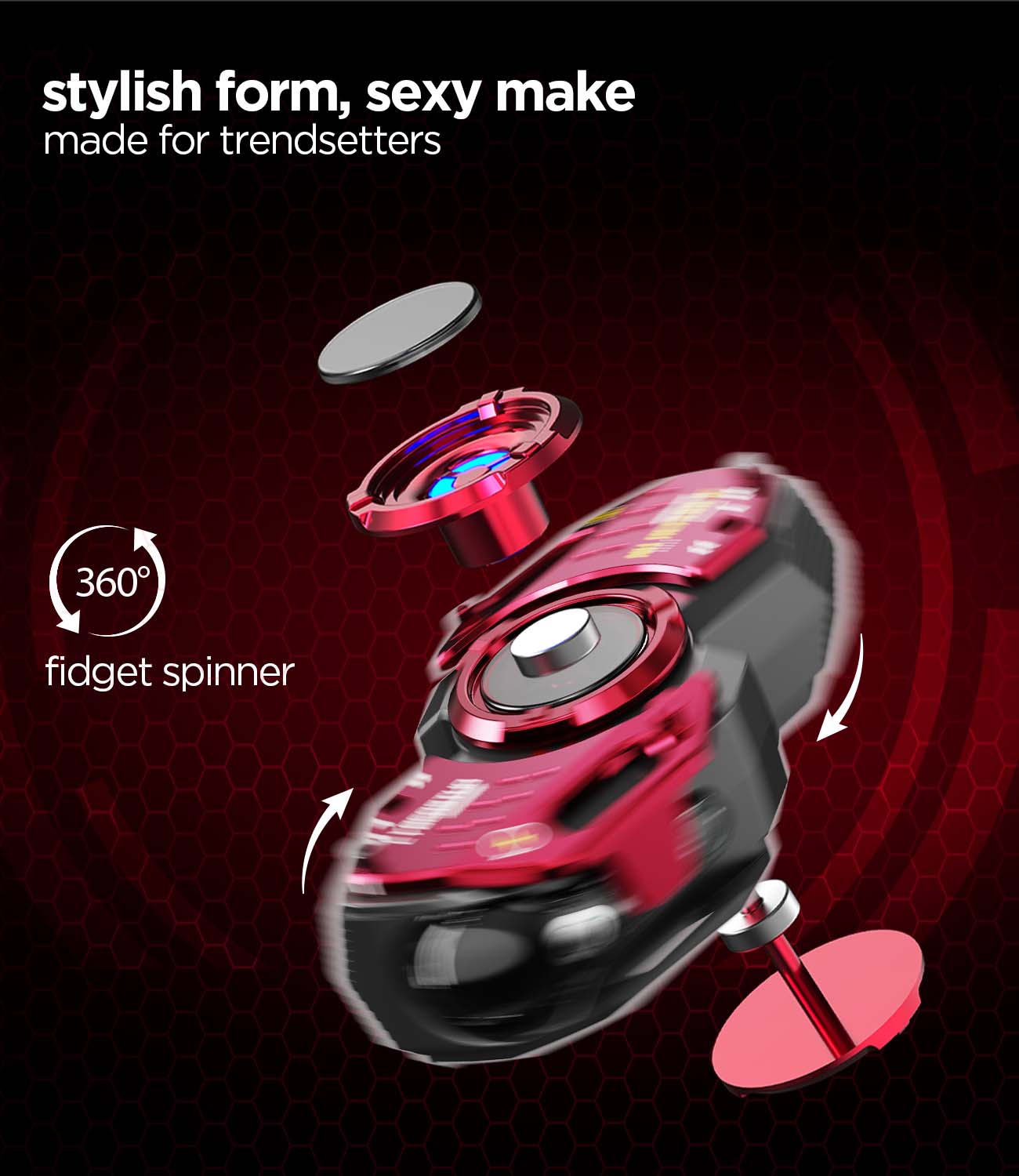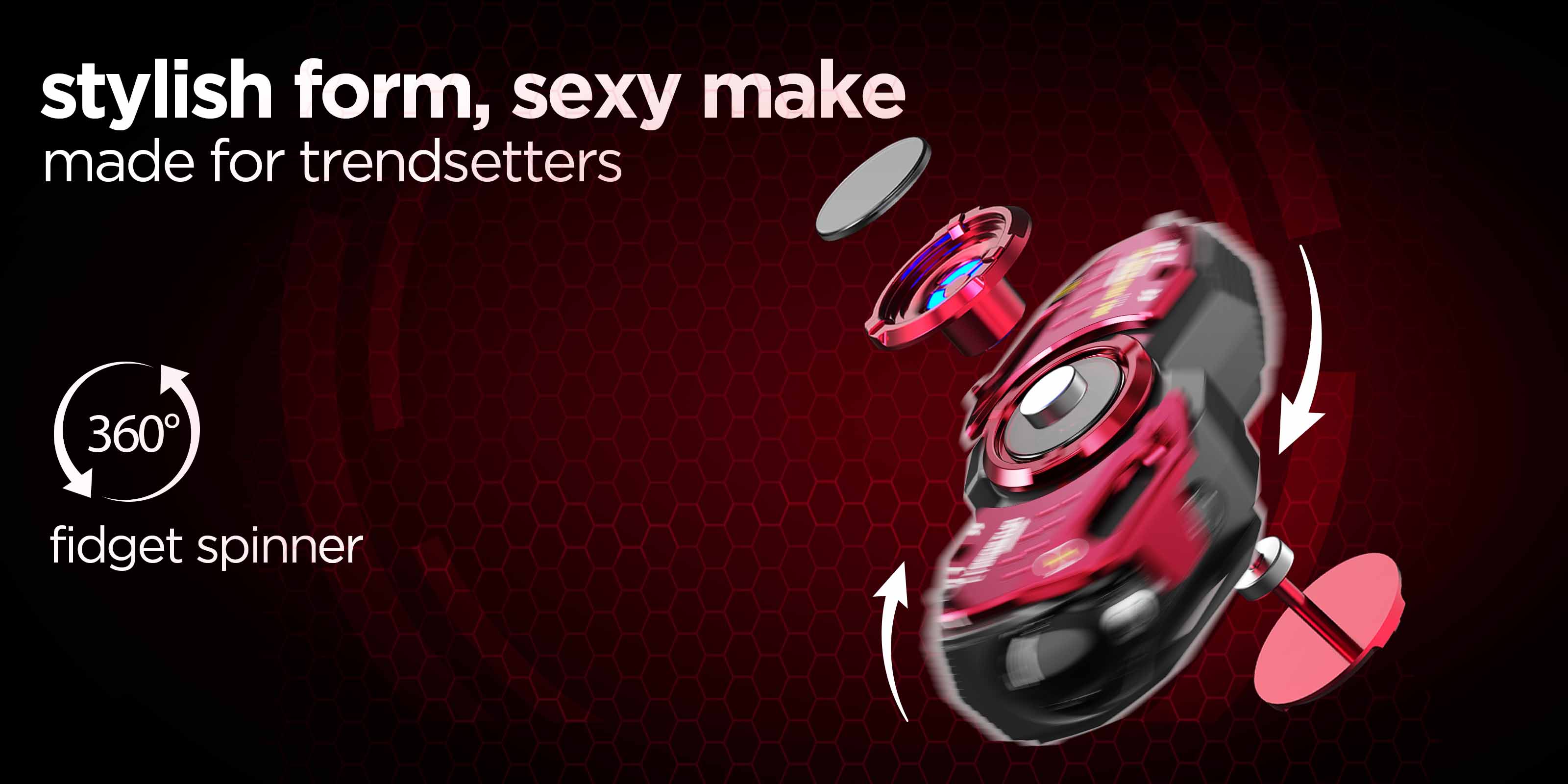 Introducing the revolutionary 360° Fidget Spinner Earbuds, featuring Swisshhhh Voice technology. Immerse yourself in unparalleled audio freedom.