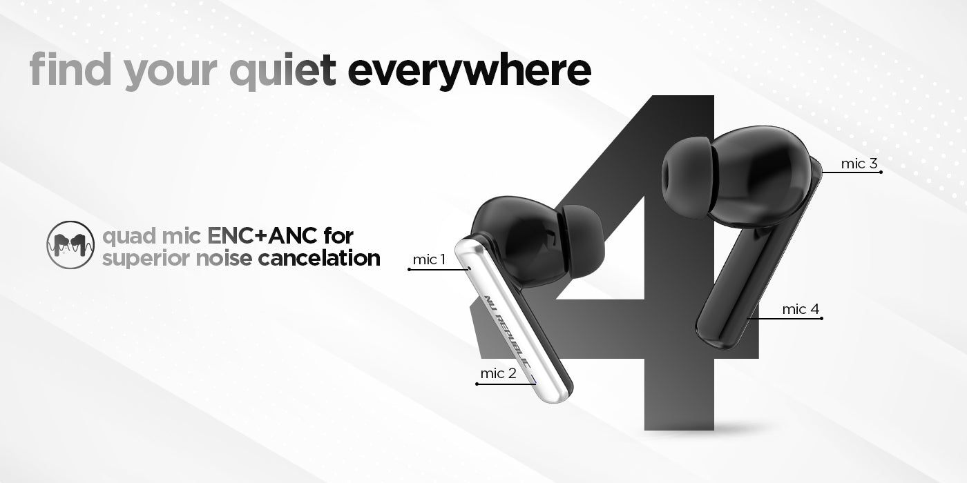Featuring both active noise cancellation and environmental noise cancellation with quad mics, hear every sound with extreme clarity
