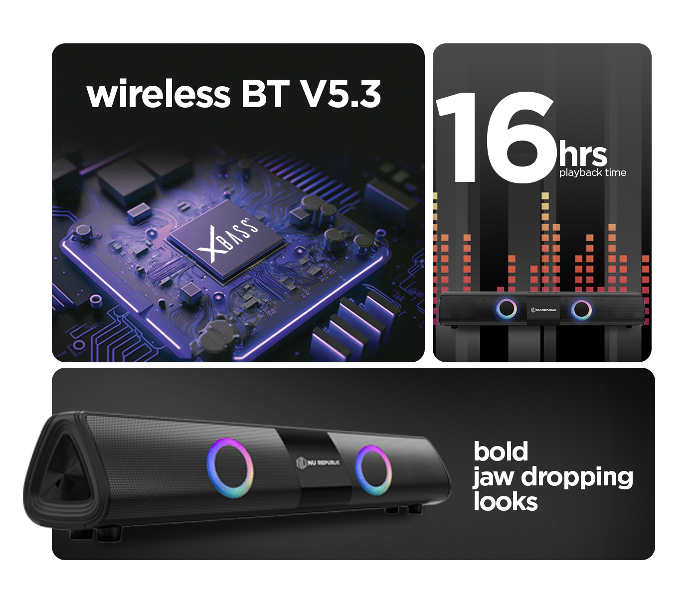 Titanium Metal Texture | 20W RMS Output | Multi RGB Modes | X-Bass® Technology | 16 Hrs Playtime