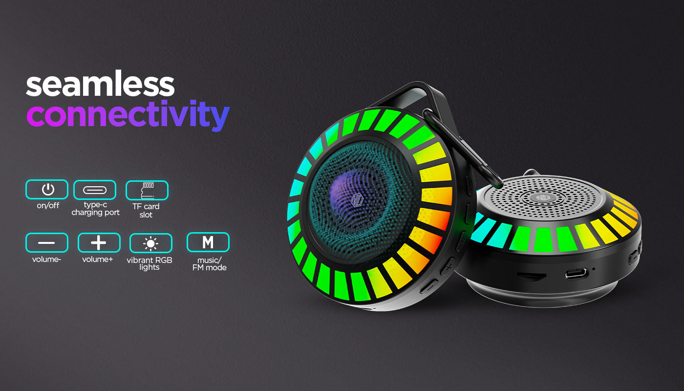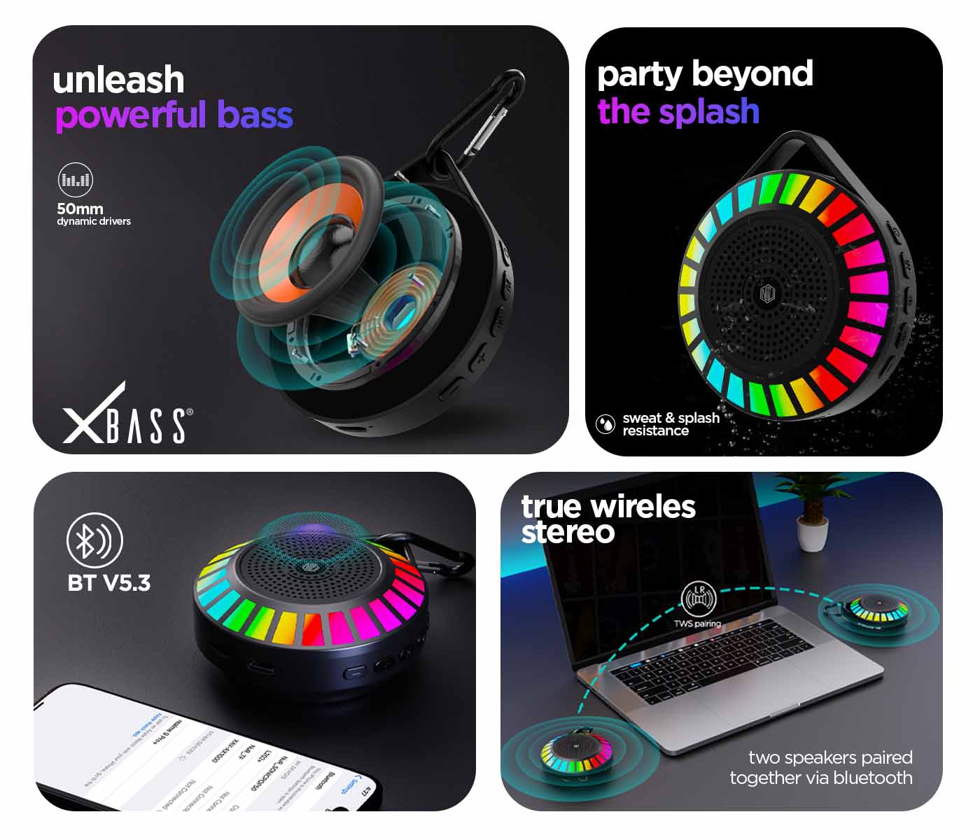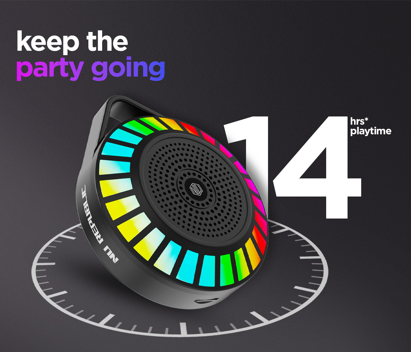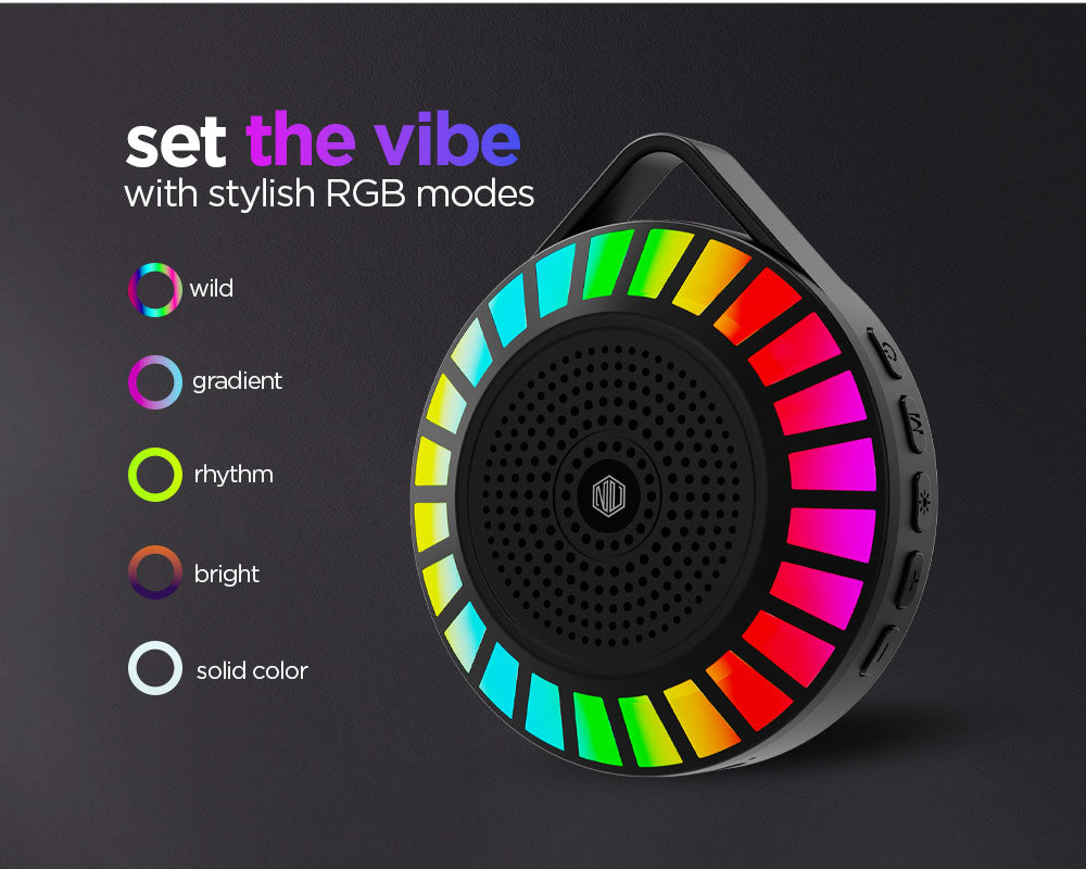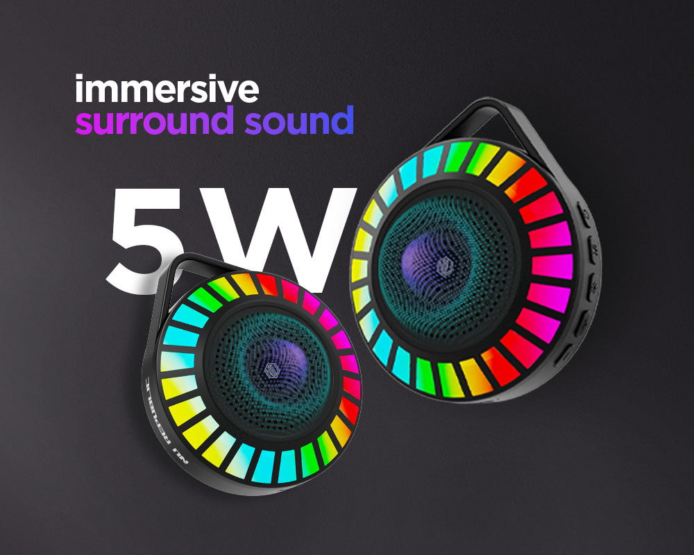 Vibrant RGB lights | 5W Portable Wireless Speaker | BT V 5.3 | 5W RMS Output | Multi RGB Modes | X-Bass® Technology | 14 Hrs Playtime