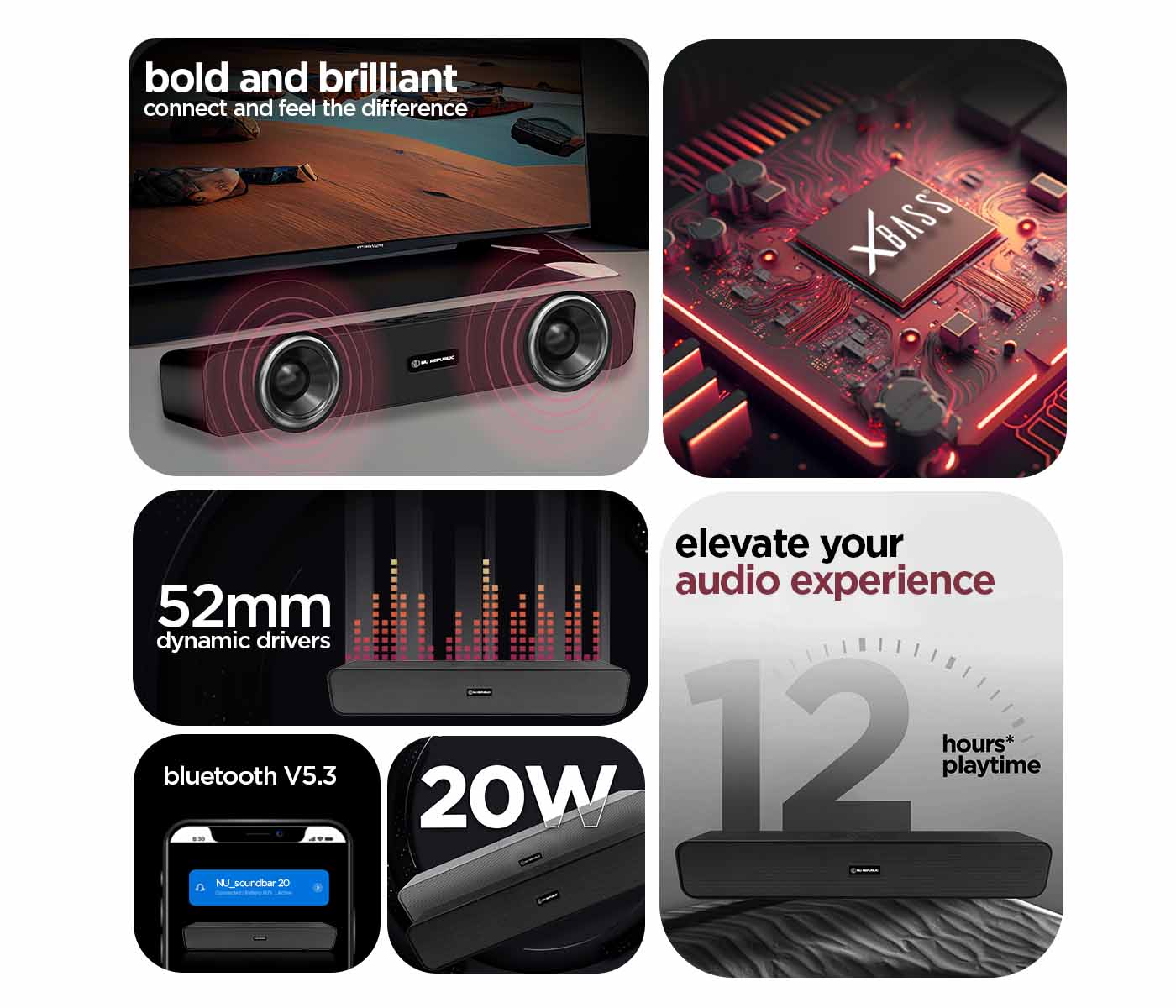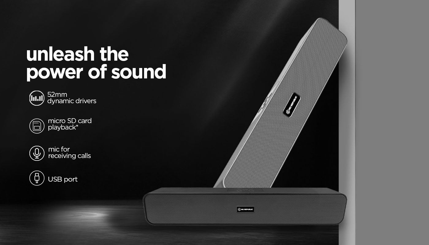 Powered by Nu Republic’s X-Bass™ technology, Sound Bar 20 pumps out 20W of bone-crushing bass that will turn your world upside-down
