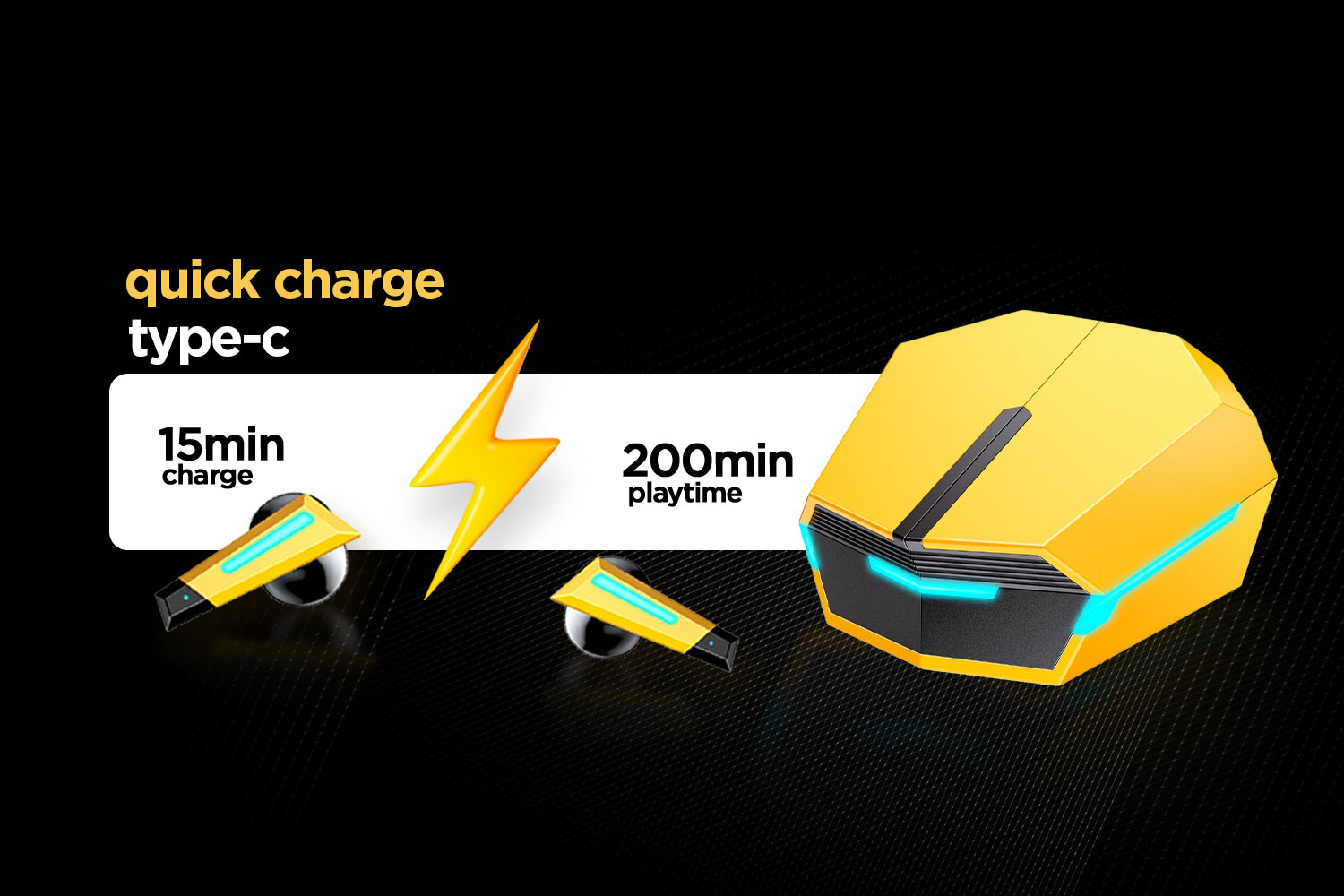 The mesmerizing LED lights on the Case and the gaming inspired case aesthetic is designed to carry your earbuds on the go. Keep track of the charge with iconic Transformer LED indicators.