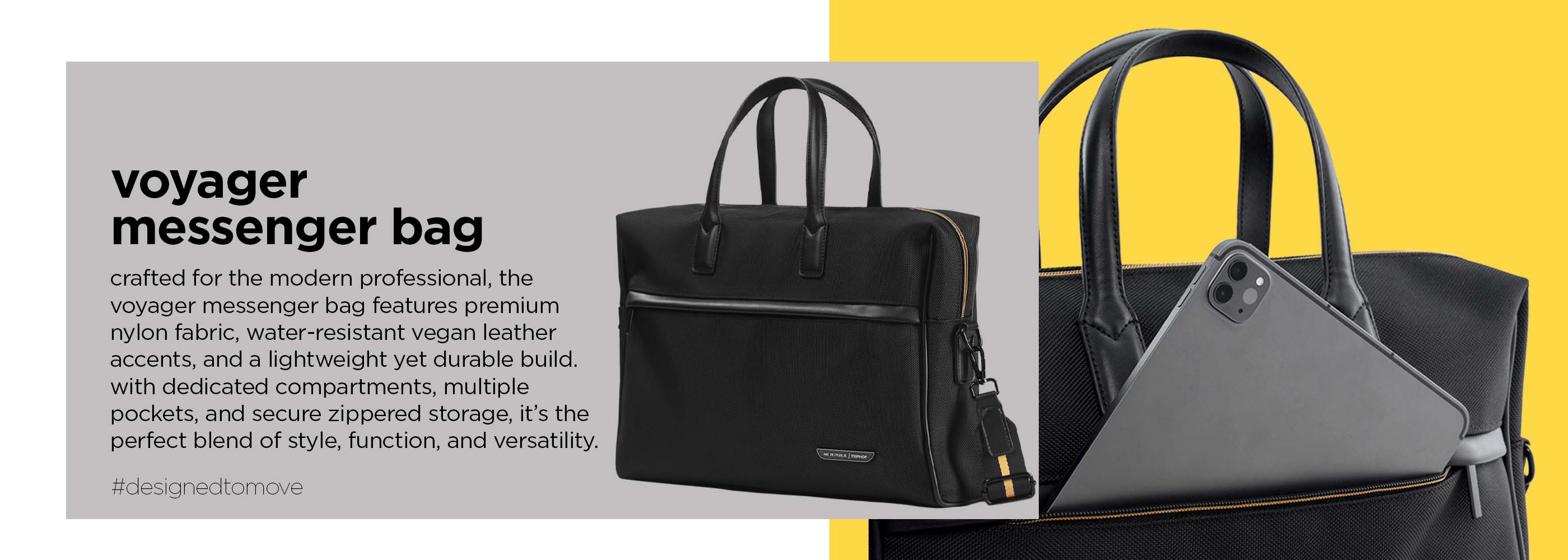 Water-resistant vegan leather & premium nylon. Laptop/tablet compartments, multiple pockets, removable strap. Lightweight, splash-dust-scratch resistant. Timeless design with a luxury embossed logo.