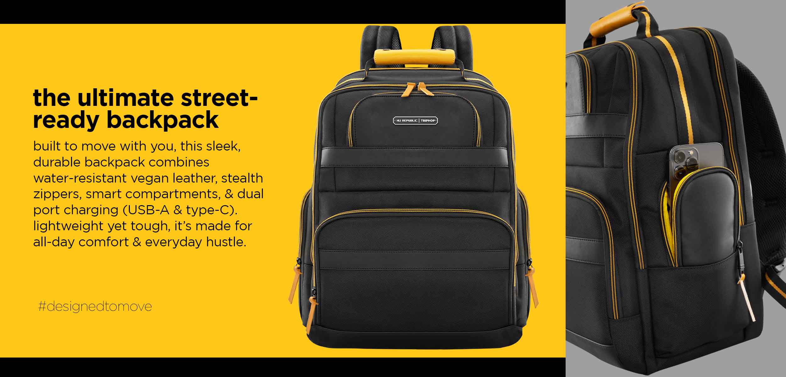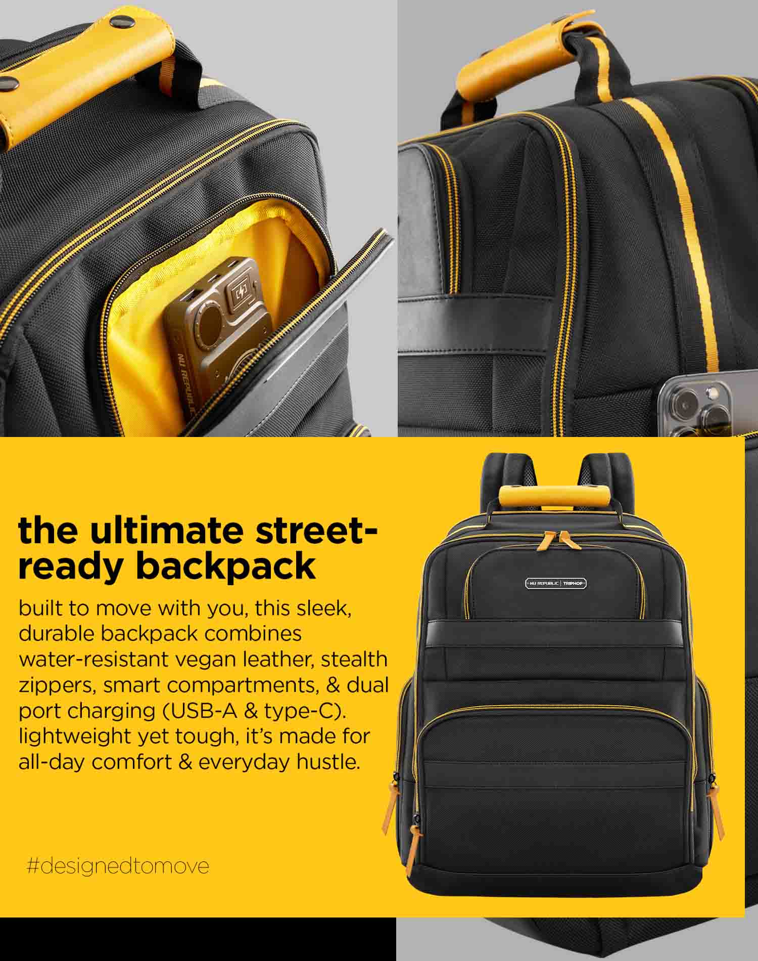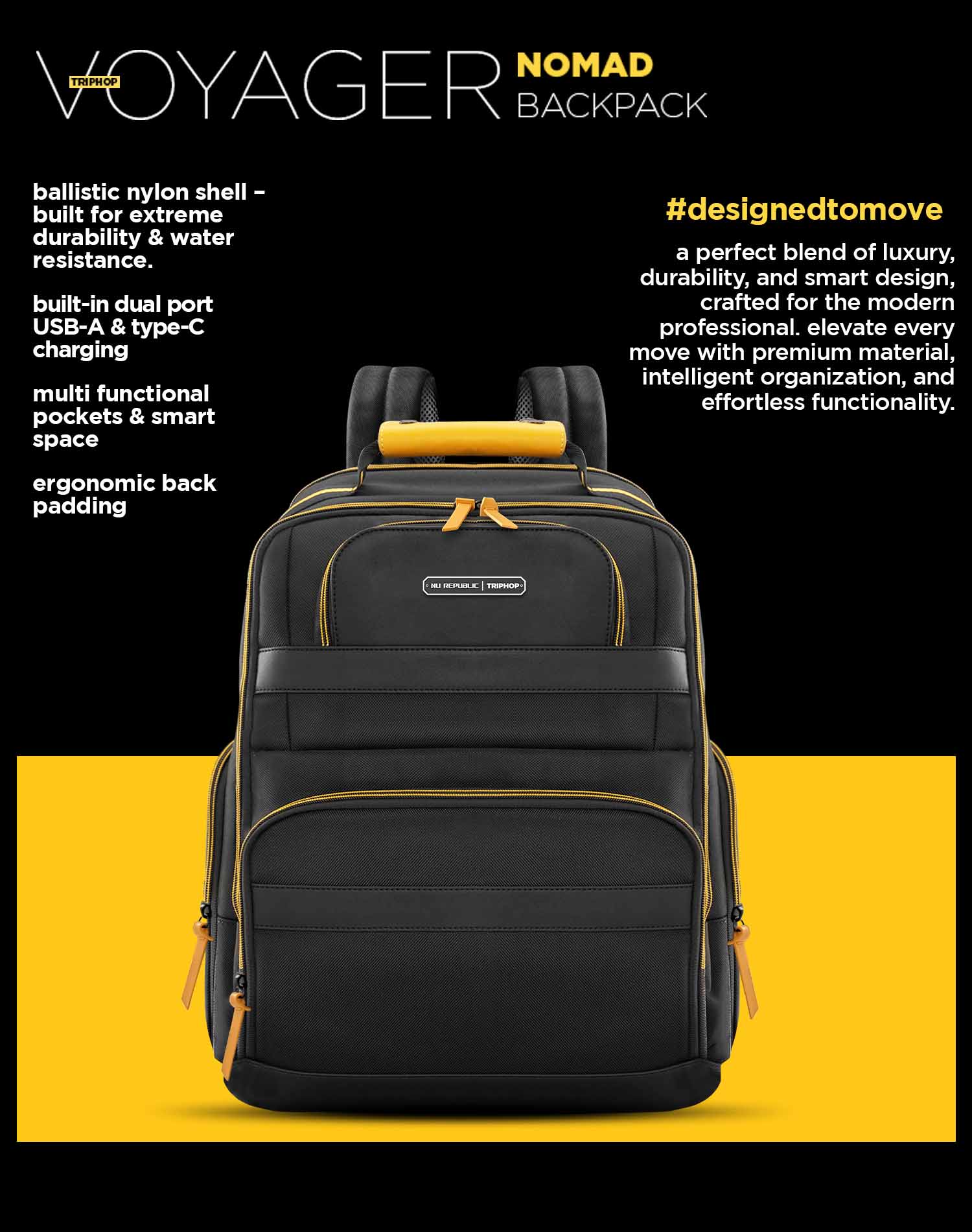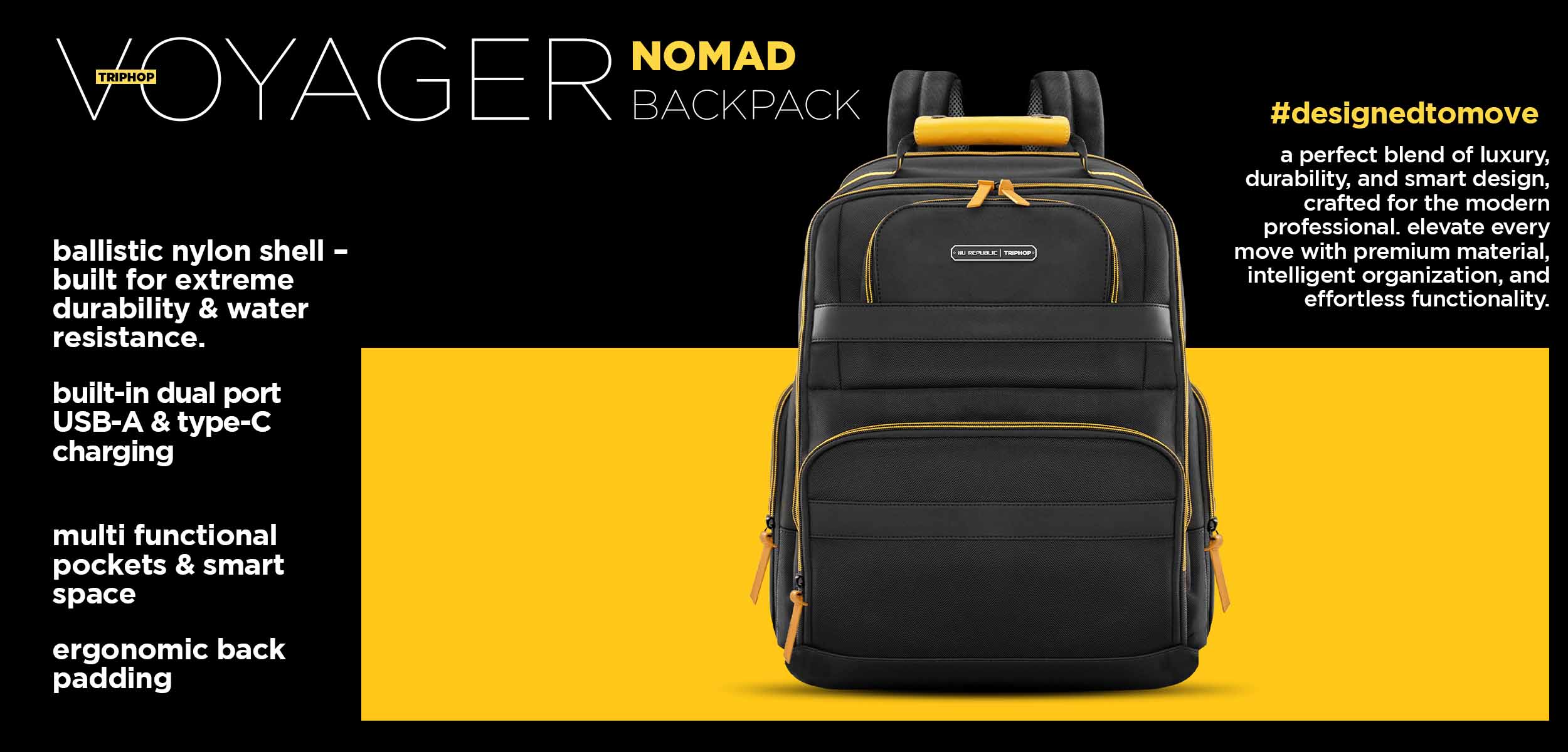 The Voyager Nomad is built for creators, commuters, and go-getters who don’t slow down.With its rugged ballistic nylon shell and vegan leather exterior, it’s tough, waterproof, and ready for anything.